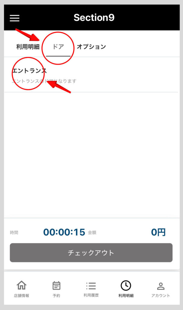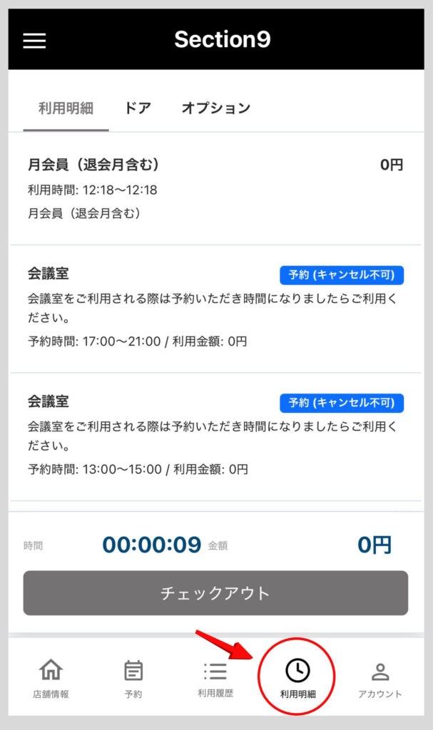 チェックイン・チェックアウト画面には利用明細ボタンをクリックすればどの画面からでも戻る事が可能です。